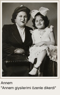 Annem Rukiye Taştekin giysilerimiz için çok özen gösterirdi. Ankara İsmetpaşa Kız Öğretmen okulu mezunu bir öğretmendi. O zamanki öğretim gereği ev ekonomisi, yemek,dikiş,nakış, moda, davranış kuralları, resim, davet hazırlama konusunda yetişmişti. Annemin 1940'lı yıllardaki resimlerine bakıyorum da şapkalar, danteller, biyelerle bezenmiş giysiler bu gün de moda, sadece resimler sararmış...